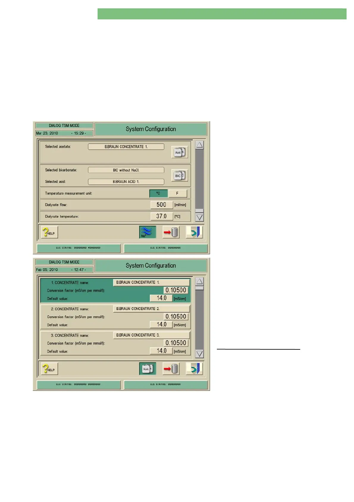 The bicarbonate dialysis is the standard factory setting. You can preselect