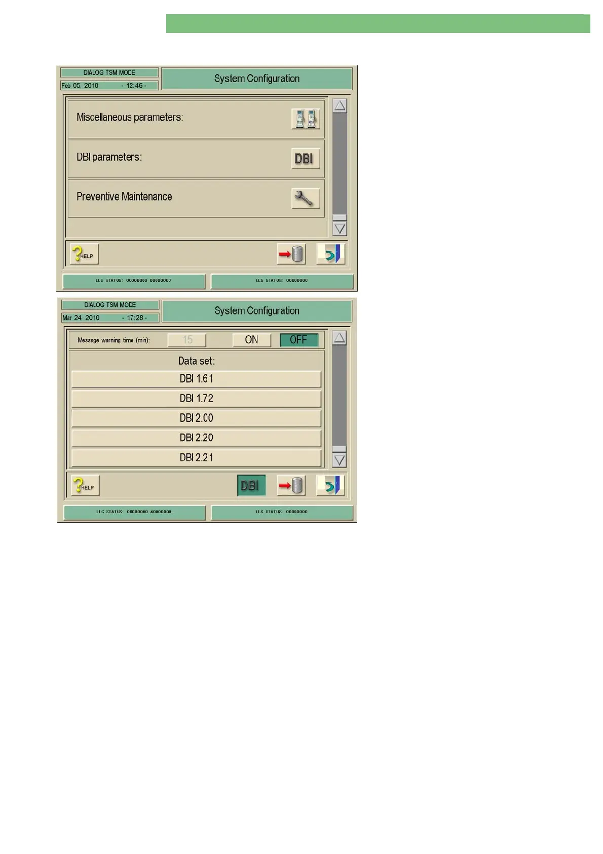 selected in the DBI Parameters menu.