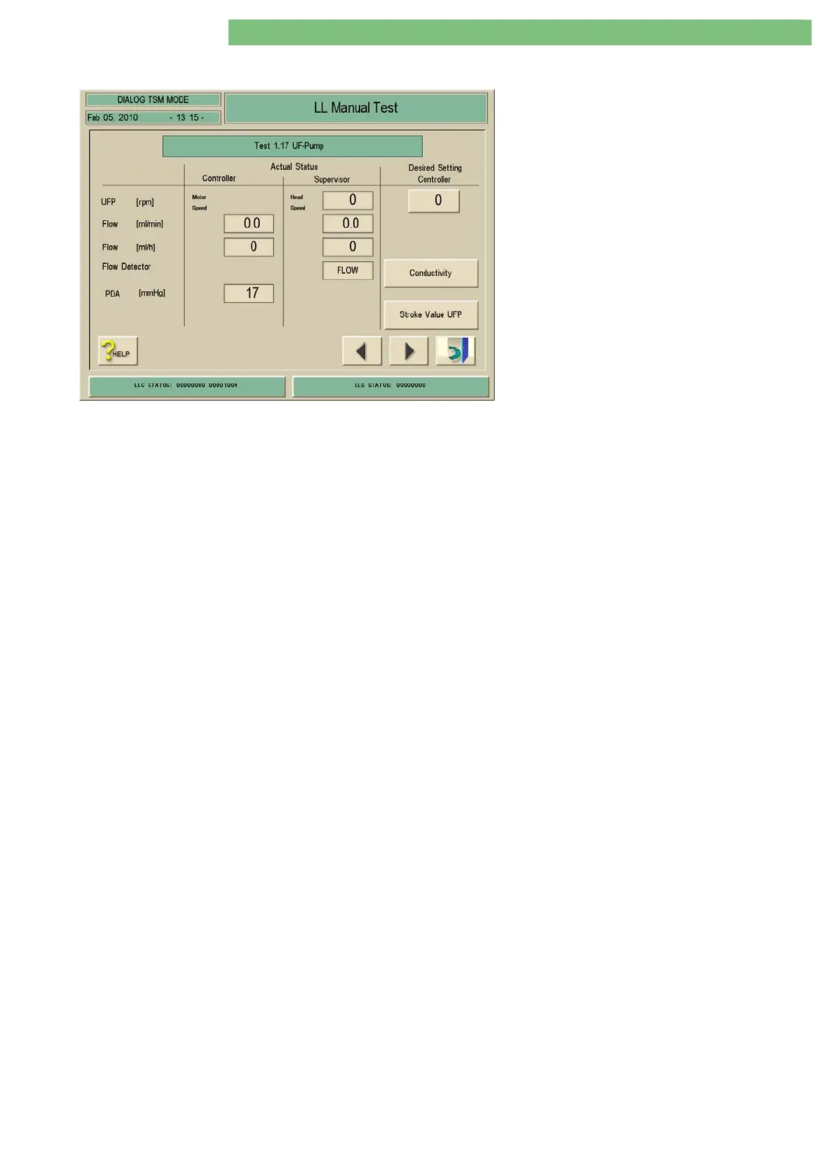 You can set the speed of the UF pump UFP. The head speed and the calculated