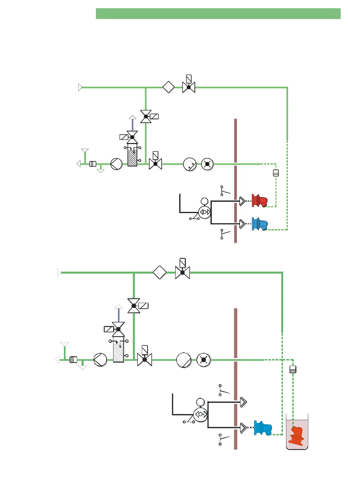 connected to the rinsing bridge the flow pumps FPA/FPE work in main flow. If