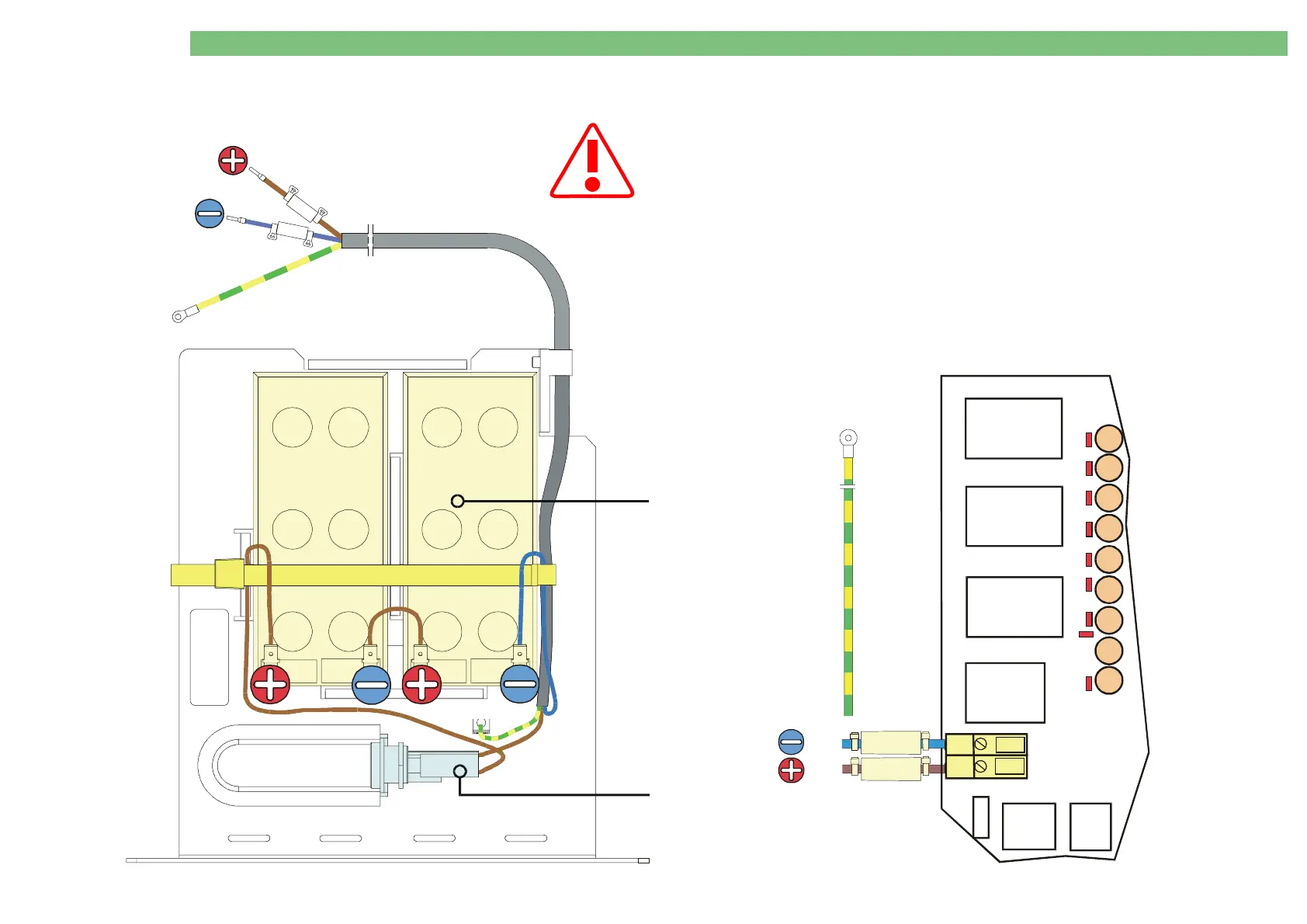 Connect (-) terminal (blau).