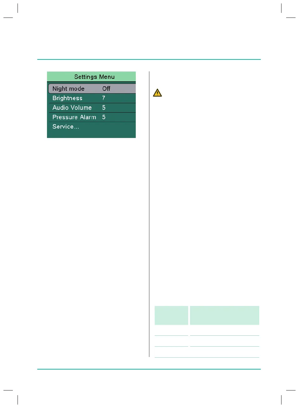 Note: In the event of a pressure alarm, the