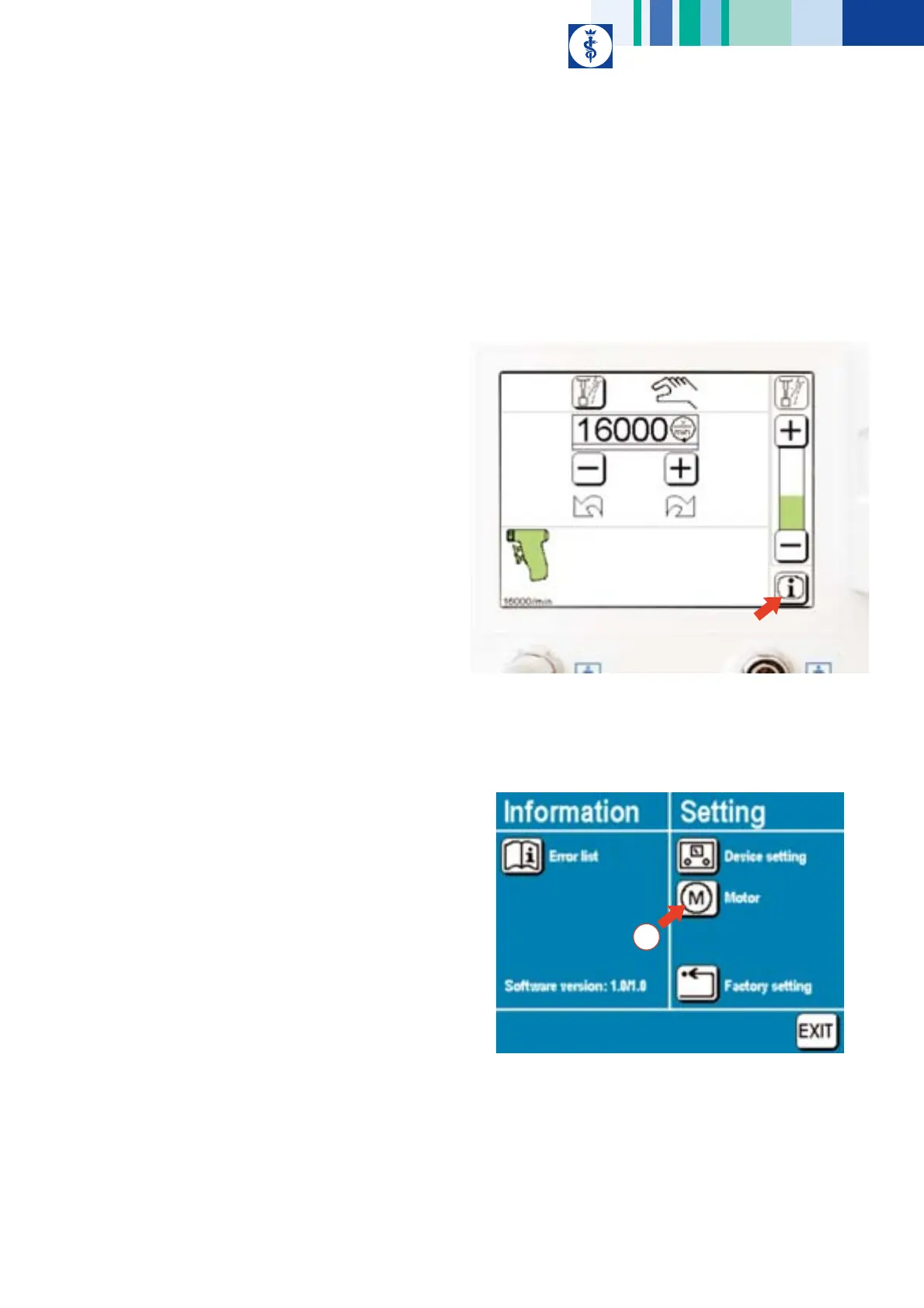 The symbol “Oscillating or tapping mode” is displayed in the motor control