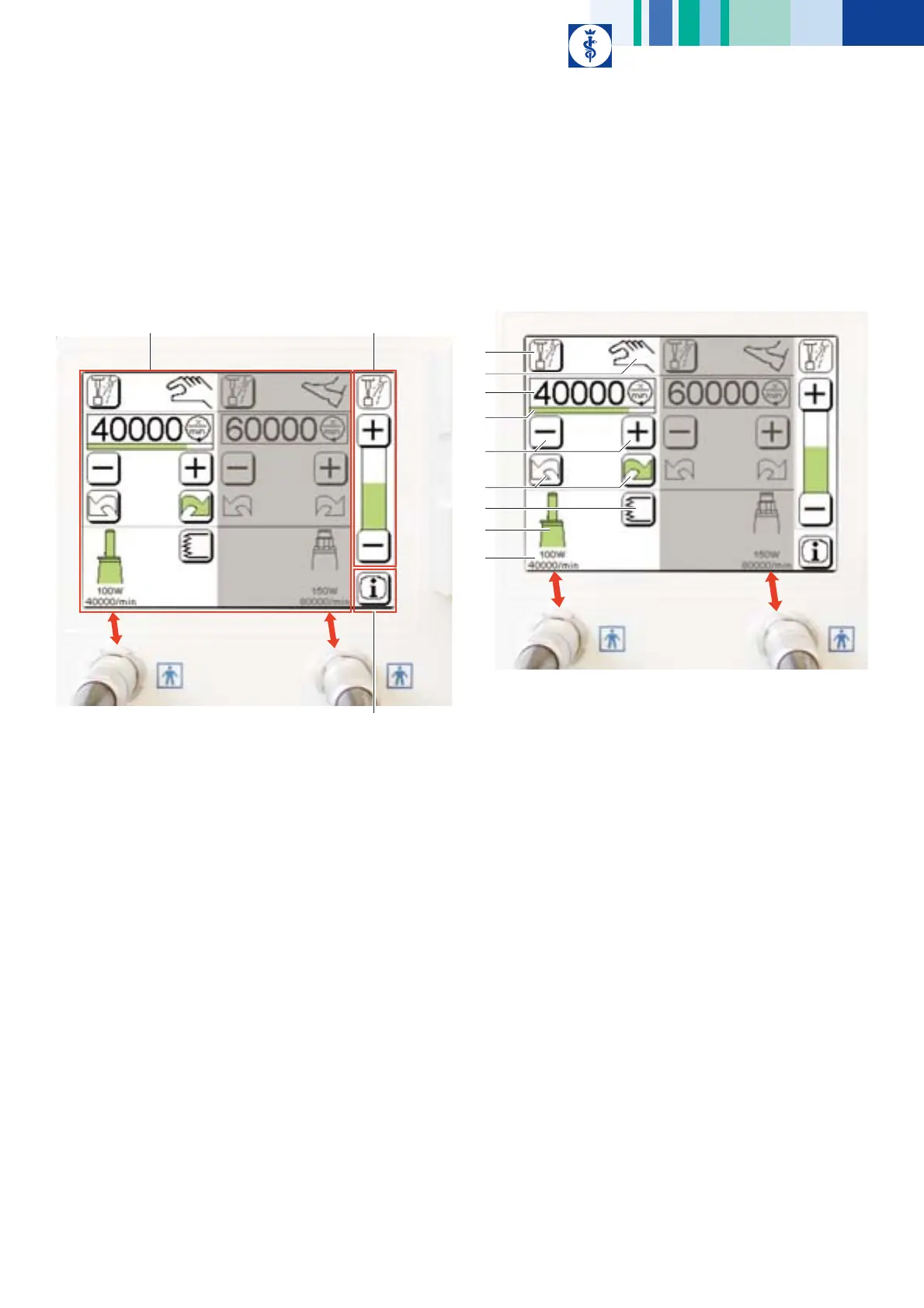 E Bedientasten zur Erhöhung bzw. Reduzierung der Drehzahlbereichs-