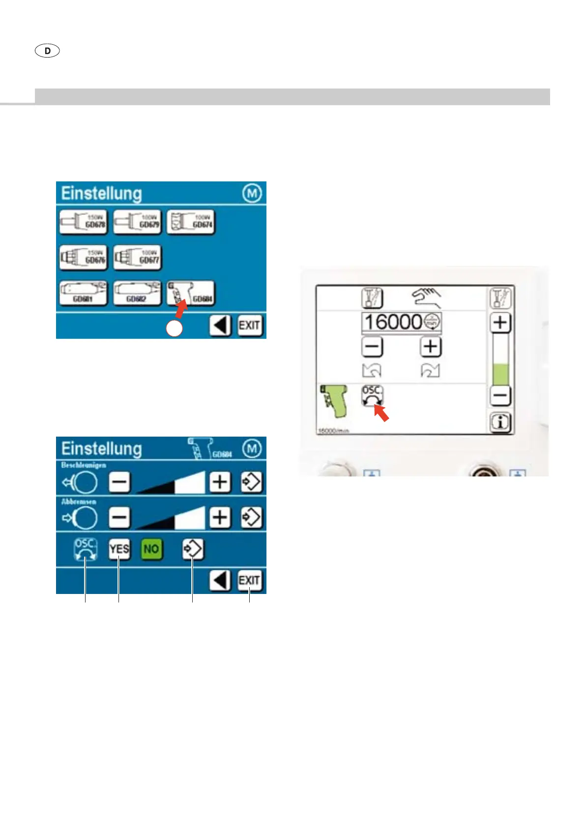 ¾ Menü ”Einstellung” des Pistolenhandstücks GD684 aufrufen: Bedien-