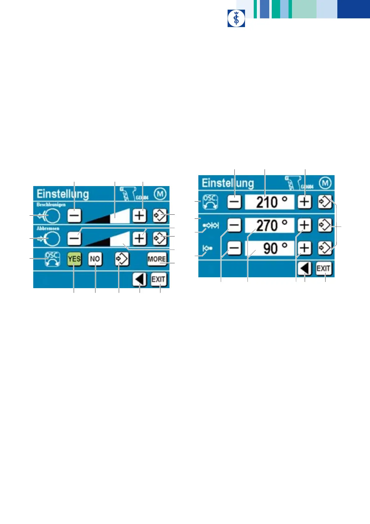 J Bedientasten zur Veränderung der Bremsrampe