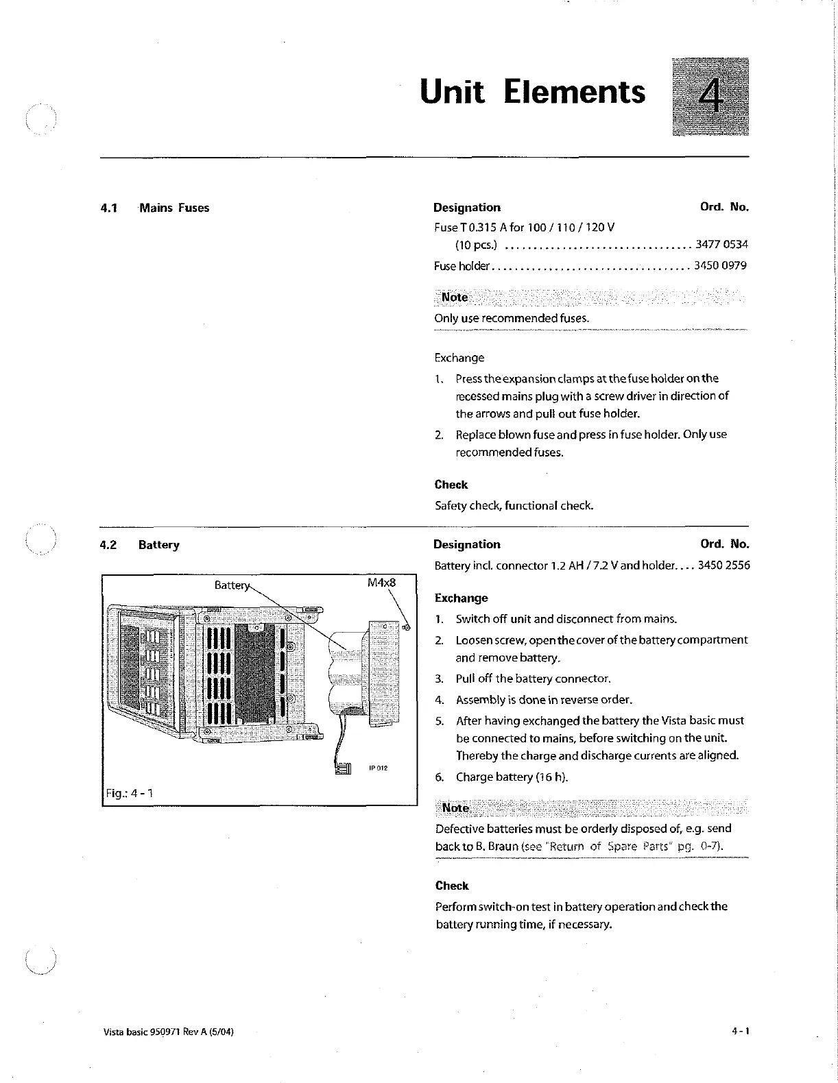 B. Braun Vista basic - Unit Elements; Mains Fuses; Battery