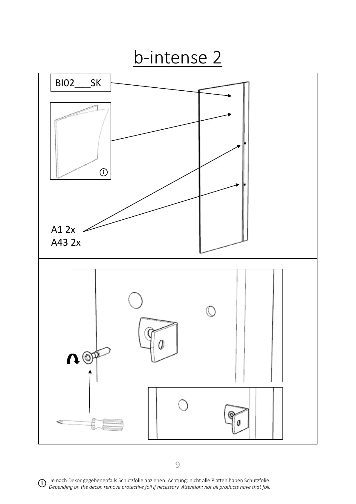 Depending on the decor, remove protecve foil if necessary. Aenon: not all products have that foil.