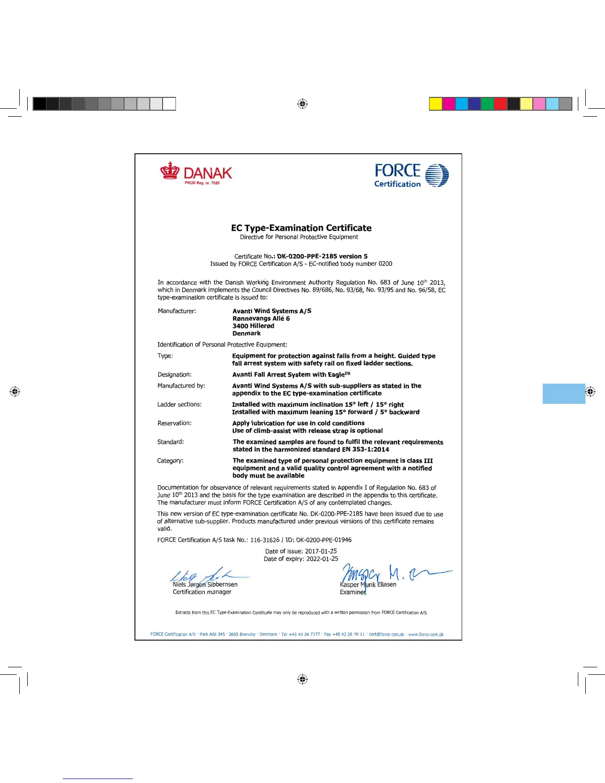 CE certificate of AVANTI Fall Protection System with Eagle