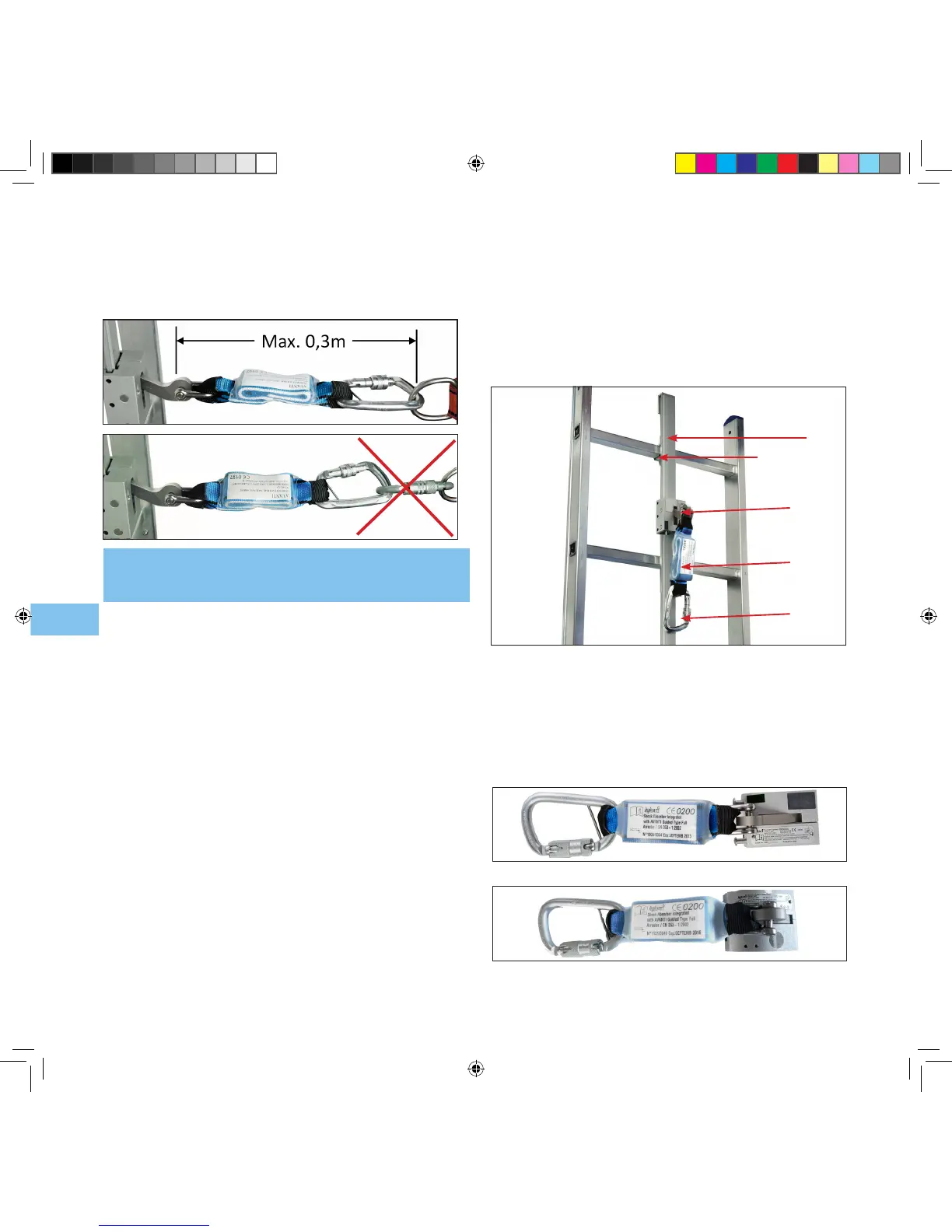 and the carabiner. (In case of two D-rings marked “A” in the front of full
