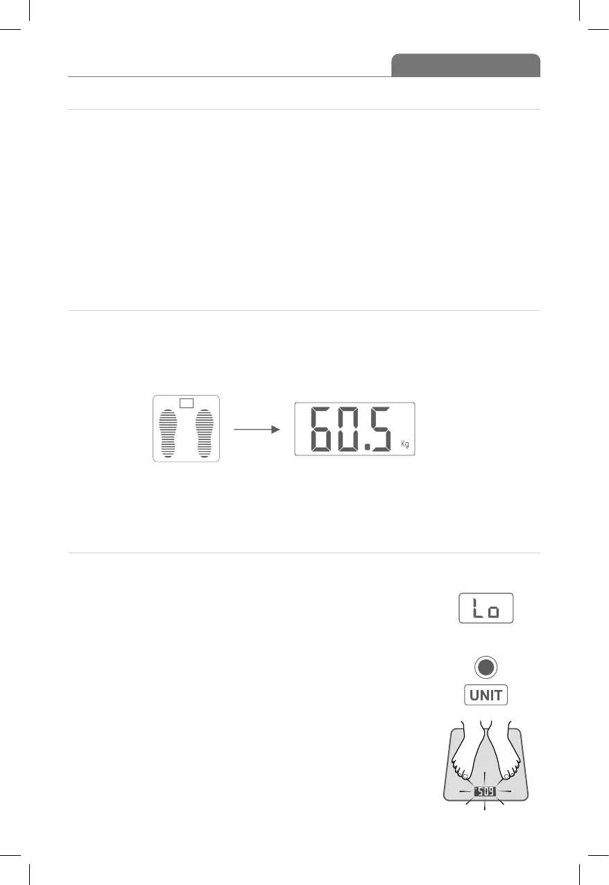 body. (Step onto the scale with your feet parallel and weight equally distributed)