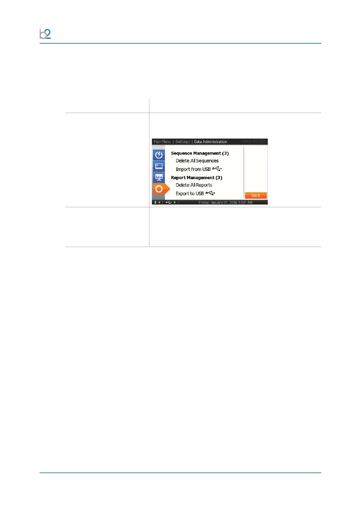 Bluetooth If the HVA is connected to the b2 ControlCenter, reports and