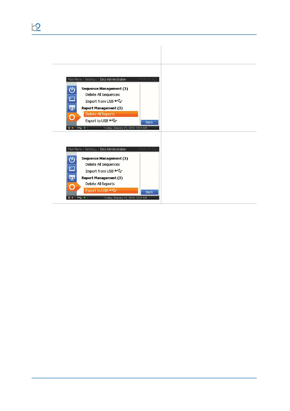 To export the stored reports on the unit,
