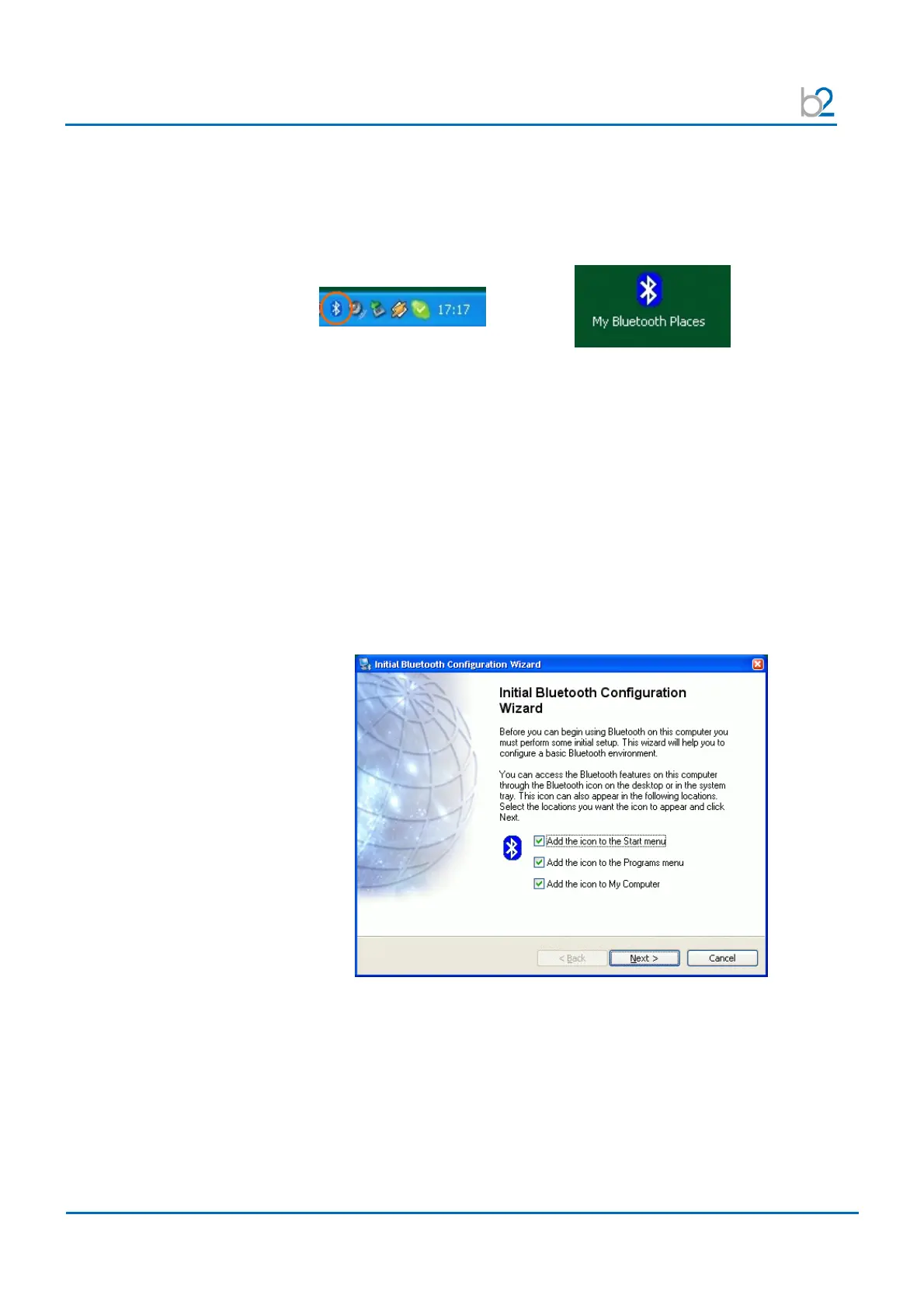 After successful driver installation a white on blue Bluetooth icon appears in the