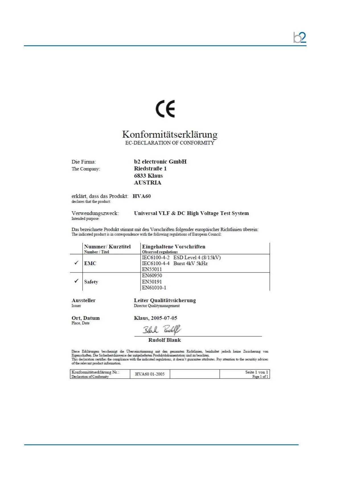Declaration of Conformity
