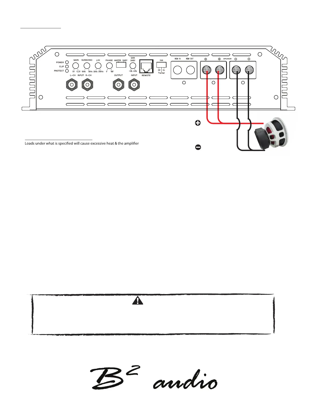 then connect it to the amplifier. Connect the switched remote. Reattach the negative wire (ground) to the battery. Operation
