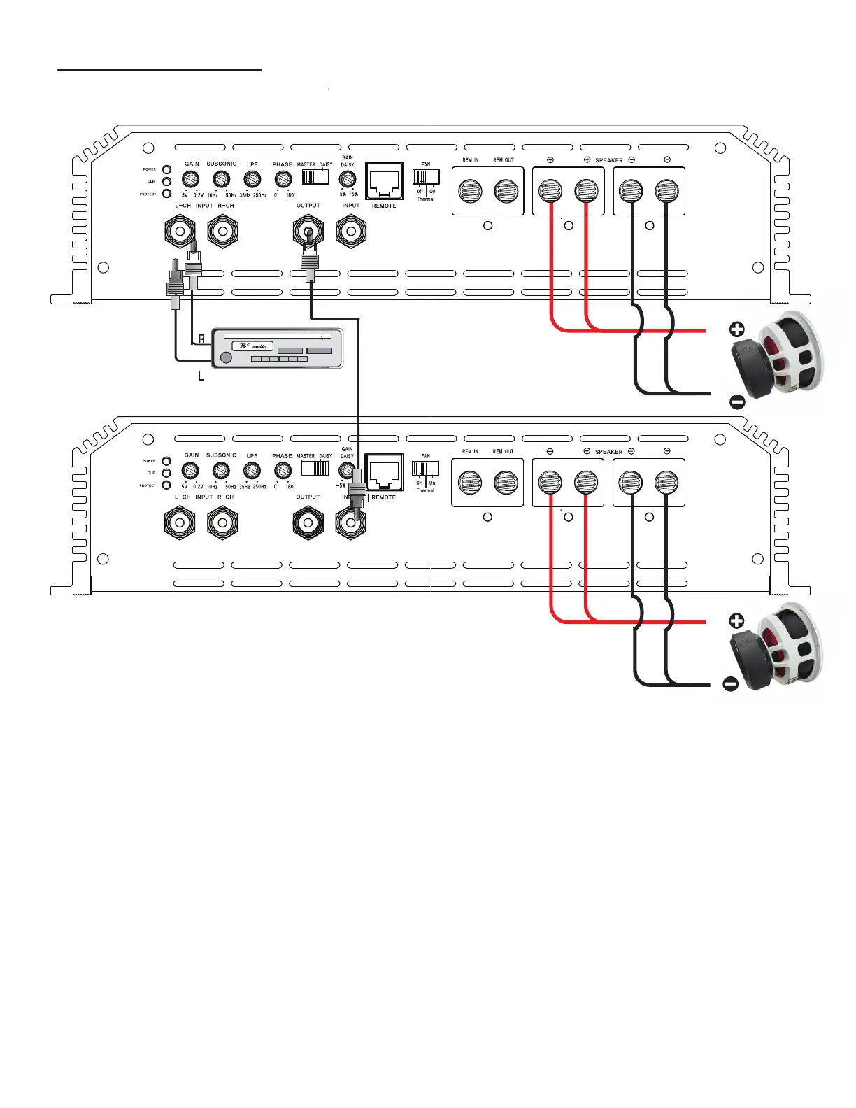 daisy by using the output RCA on the rst daisy amplier. You can continue adding ampliers in a chain this way.