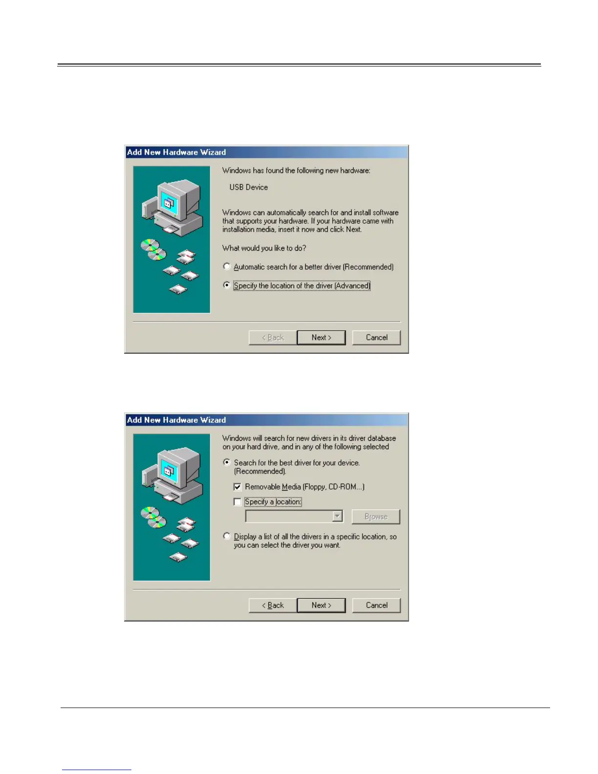 1. When the dialog asks for the location of the driver, select “Specify the location of the driver.”
