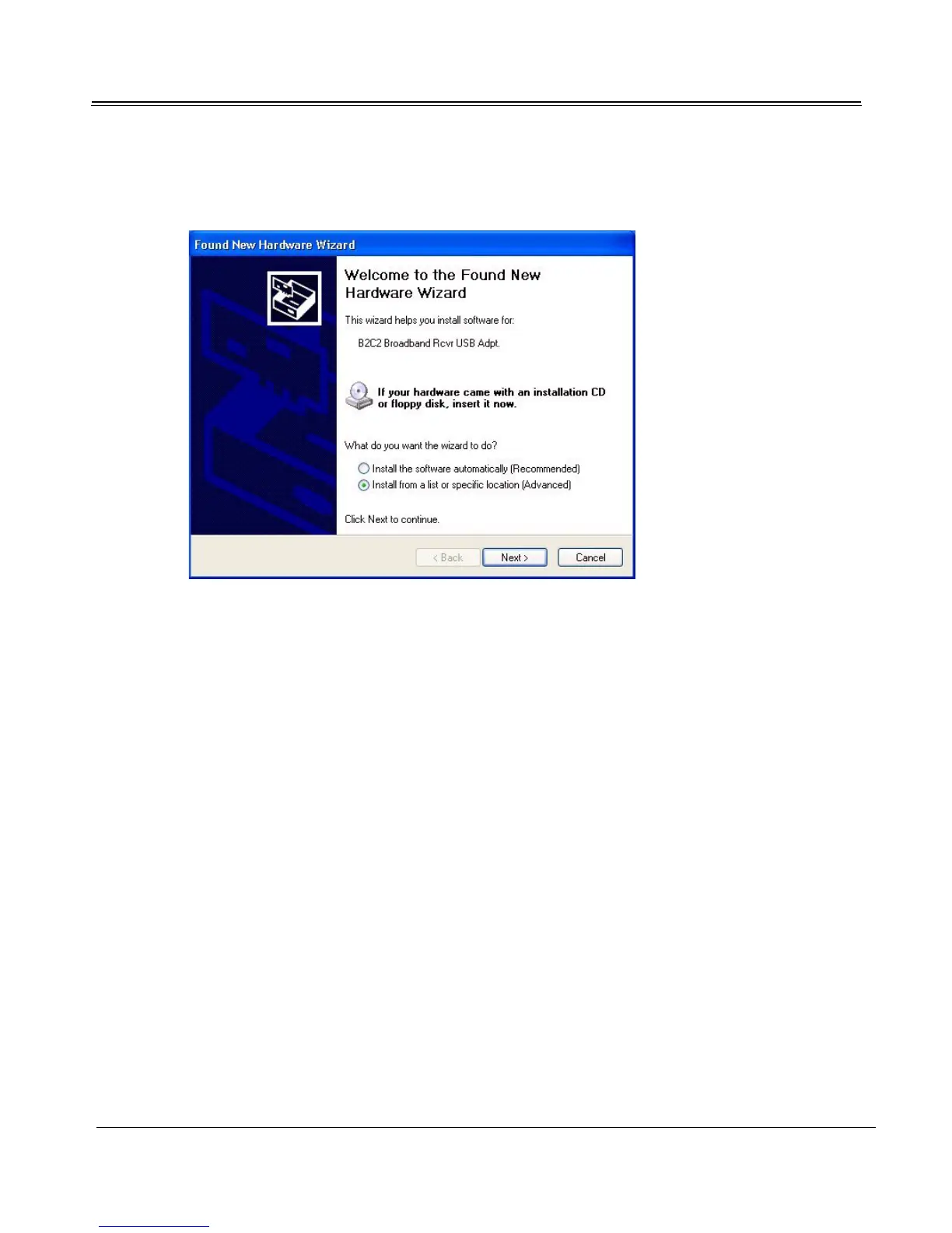 1. When the dialog asks, “What do you want the wizard to do?” select “Install from a list or specific