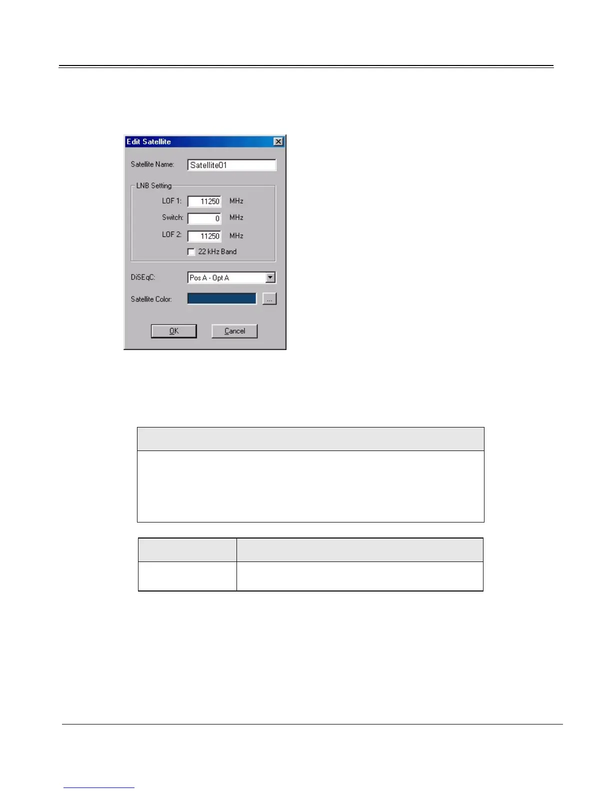 Confirm that the preset LNB Setting in the Edit Satellite dialog matches your antenna equipment. Con-