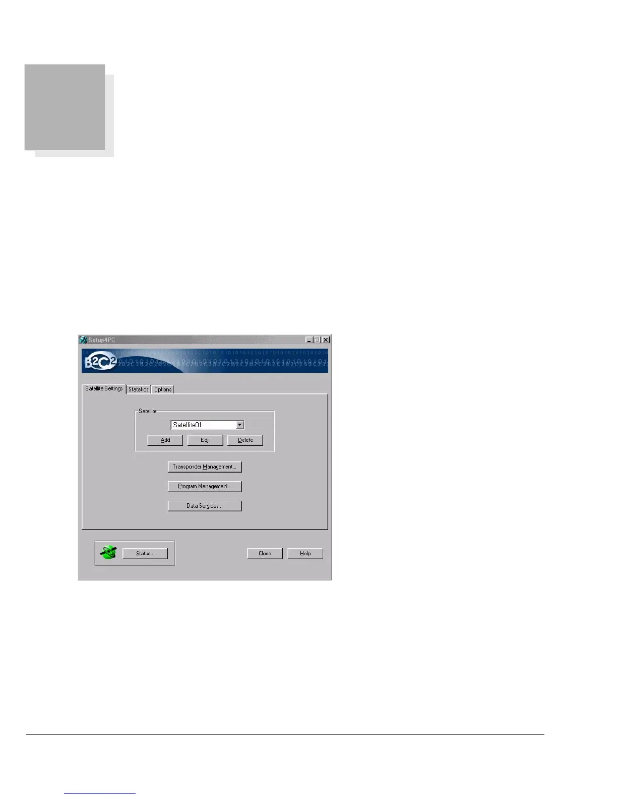 Satellite List Selects the current satellite. All management and services dialogs on Setup4PC