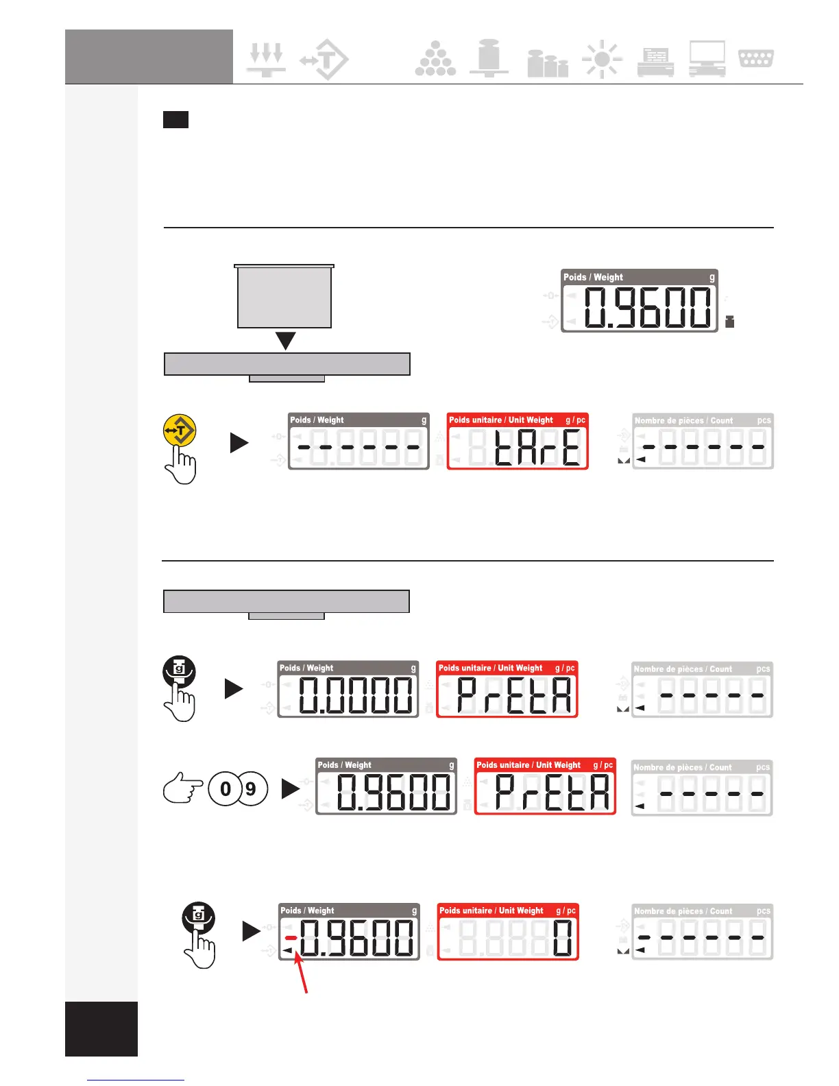 FONCTION TARE - SUBTRACT CONTAINER’S WEIGHT