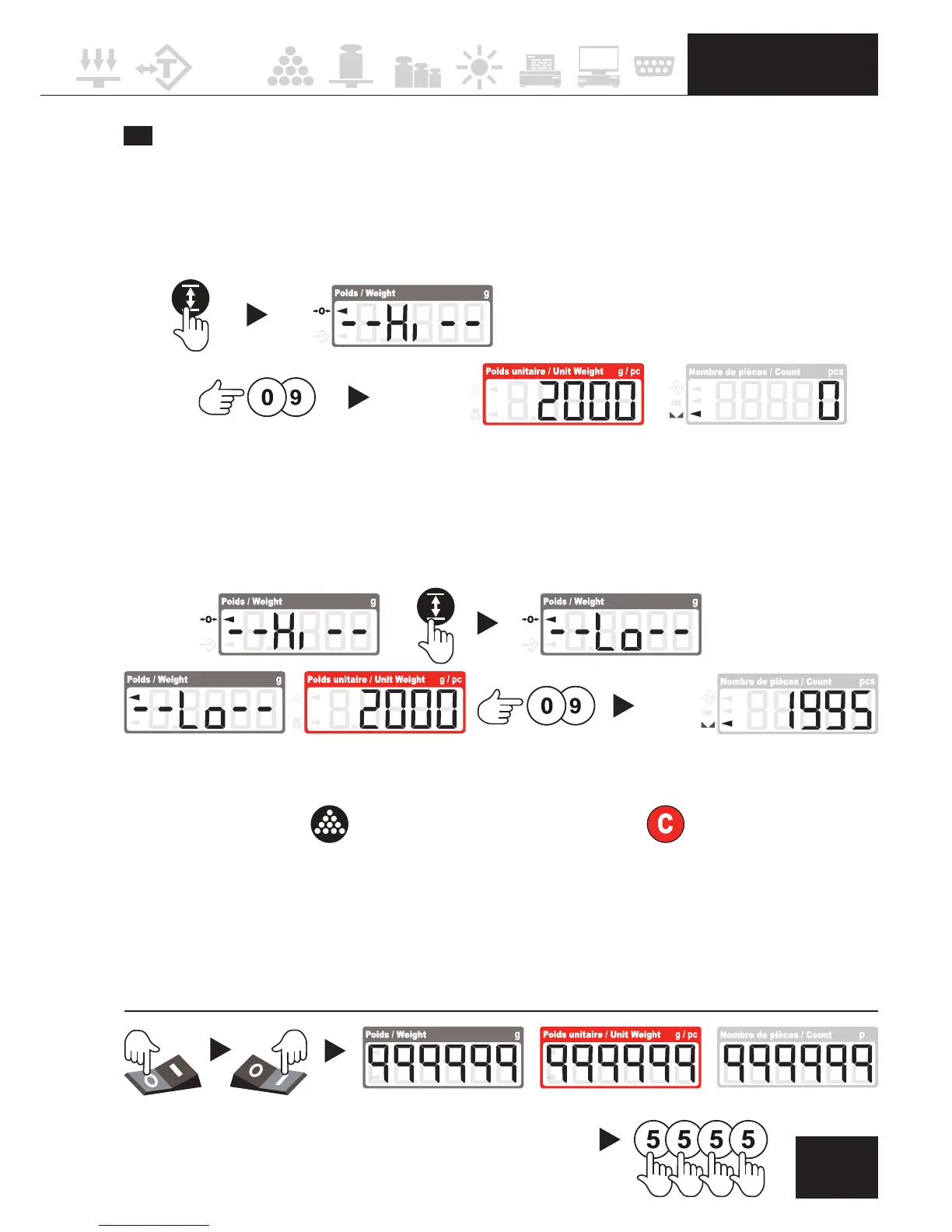 FONCTION CONTRÔLE +/- COUNTING CHECK RANGE +/- (Hi-Lo)