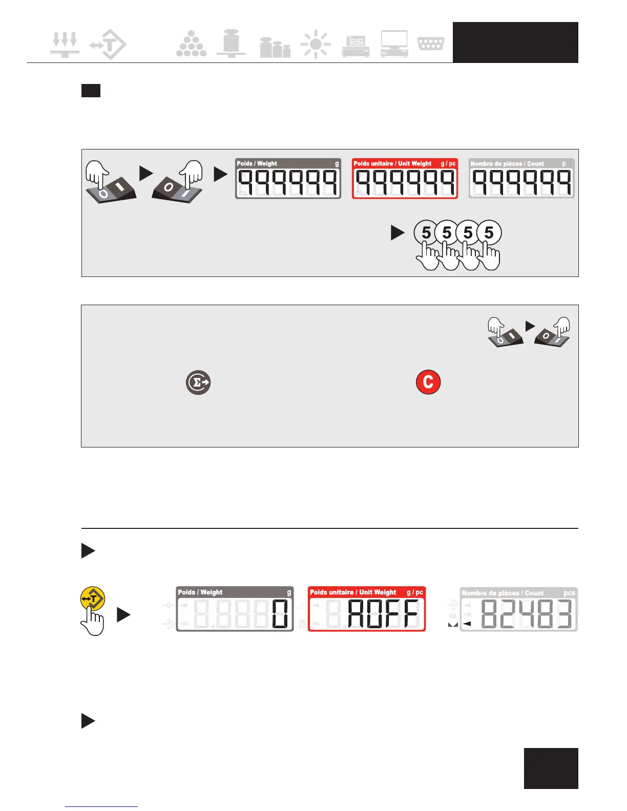 NOTE - Pour valider la modication, éteindre et rallumer la balance.
