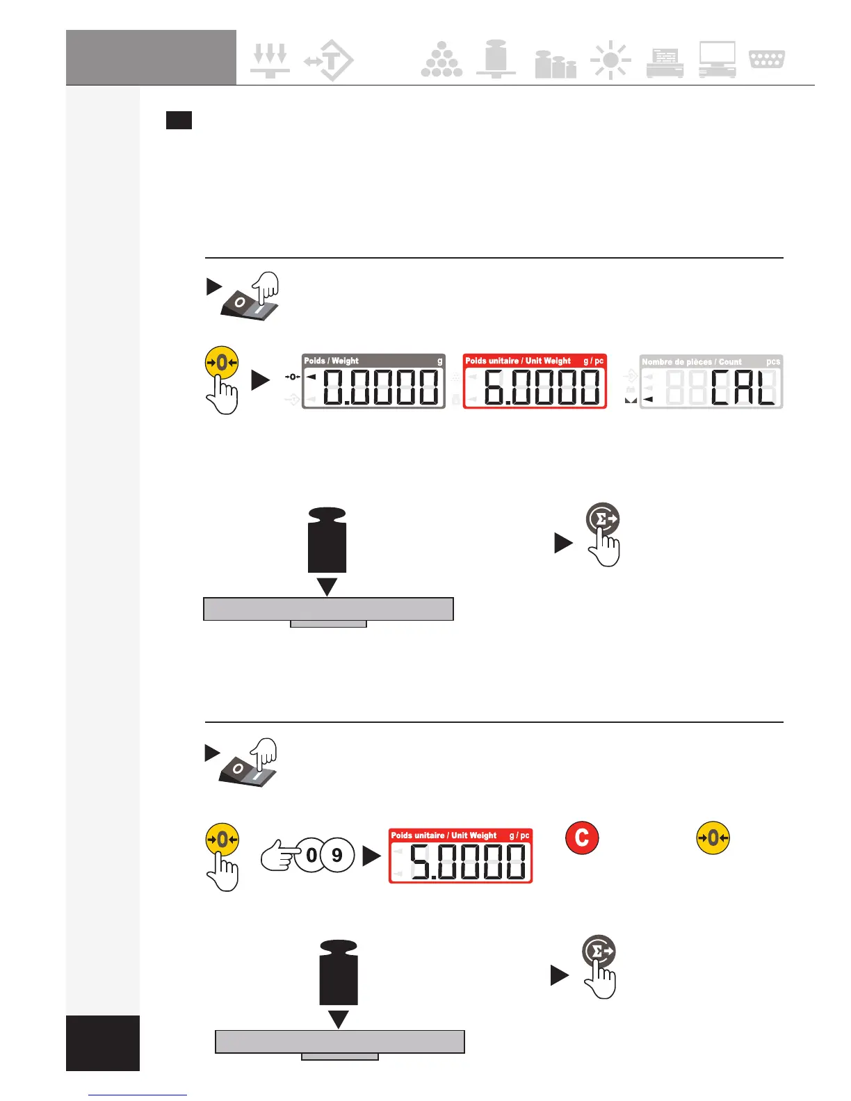 Mettre sous tension la balance, s’assurer que l’afchage du poids indique 0