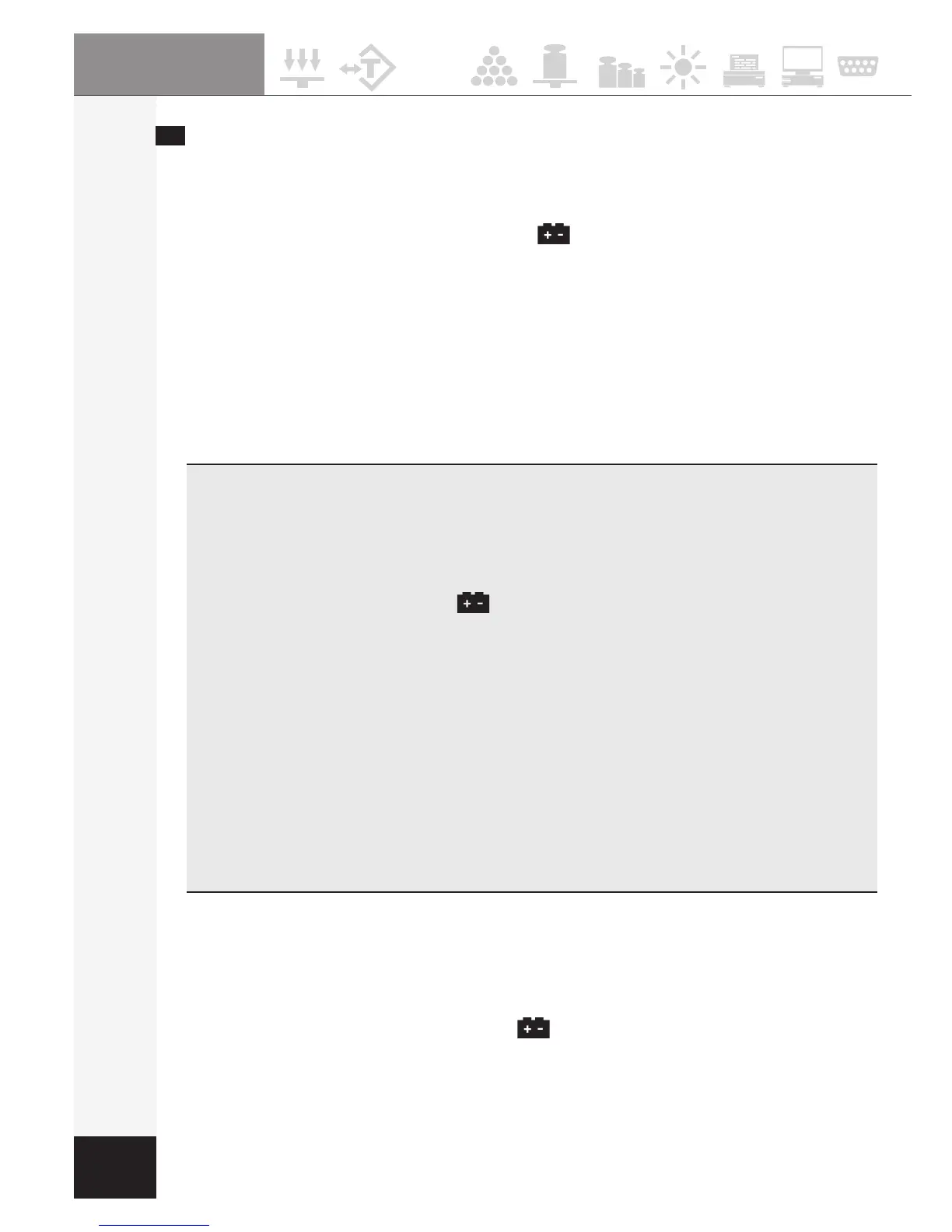 “ ” on the weight display will be on. The battery should be charged
