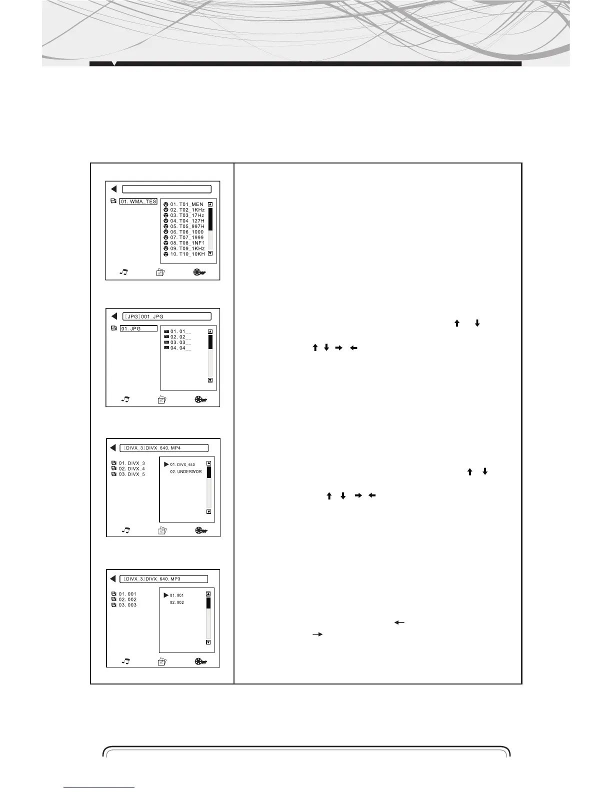 While you listen to (or watching) mixed file format disc. which os together with MP3, WMA, JPG