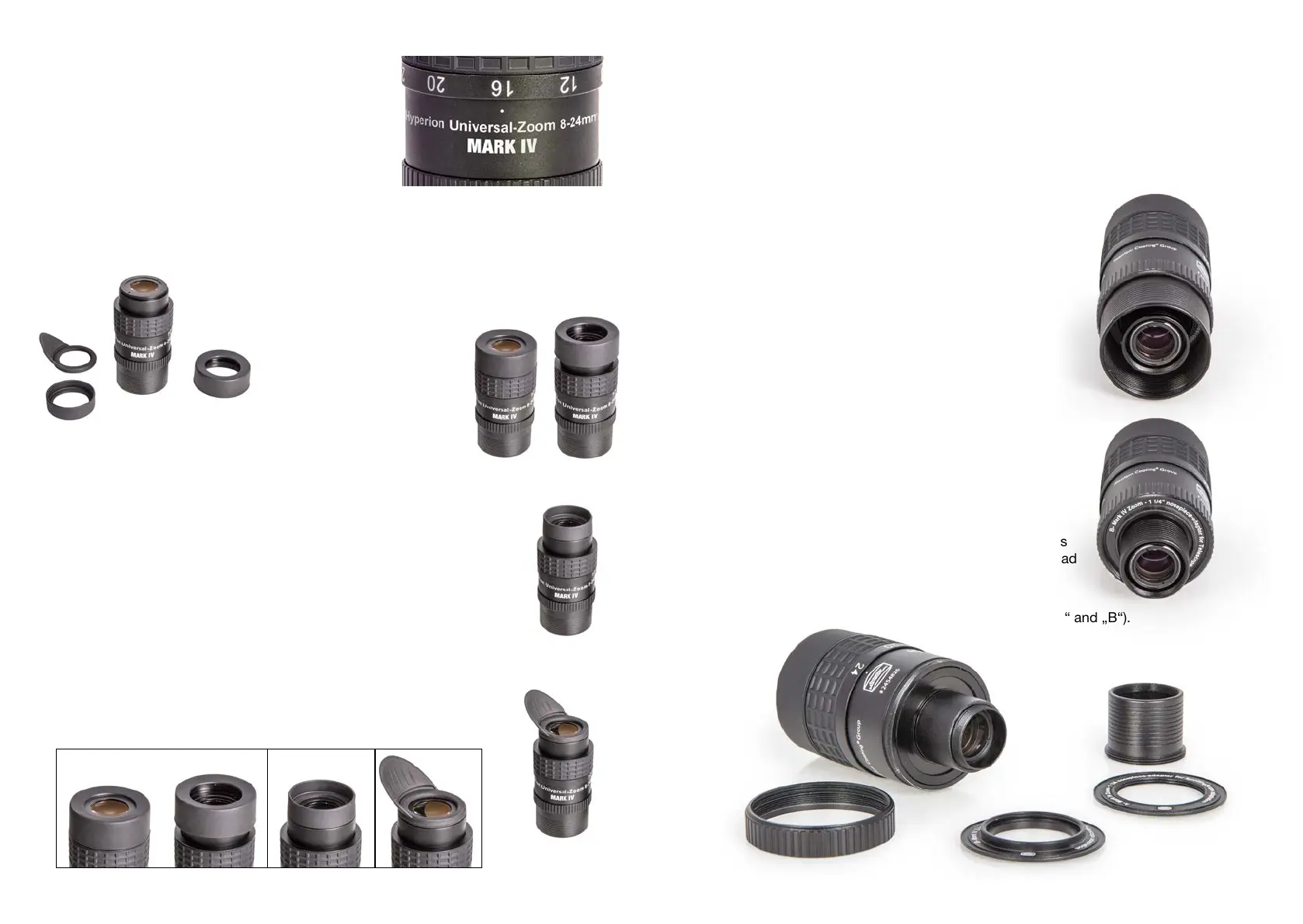 The 1¼" nosepiece ts onto both of the adapter-rings („A“ and „B“).