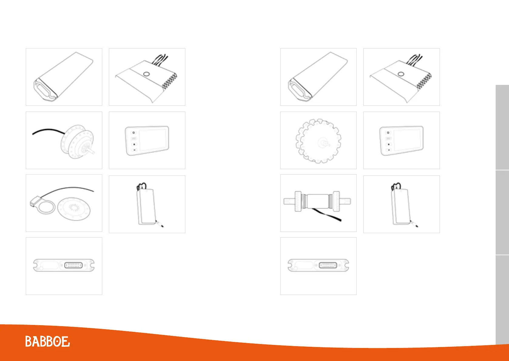 Onderdelen van de Babboe tweewieler en driewieler bakfietsen (ibo 09S e-drive)