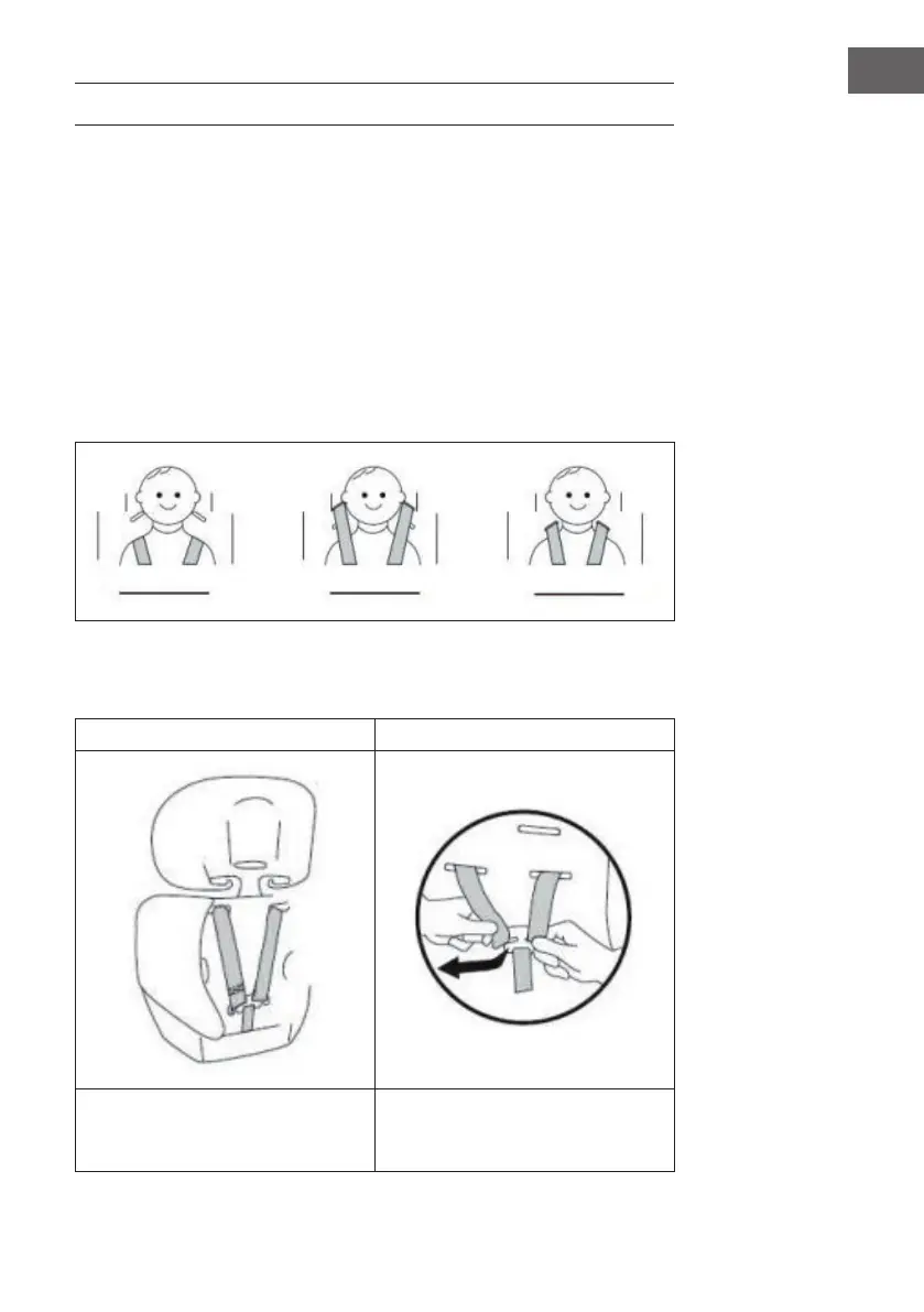schouderriem van het kind moet aan de onderkant van het zitje worden