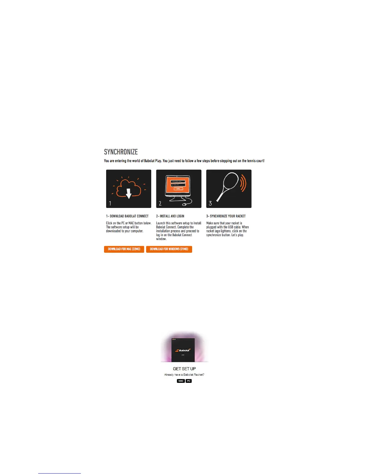 Installing BABOLAT Connect software on a PC/Mac: