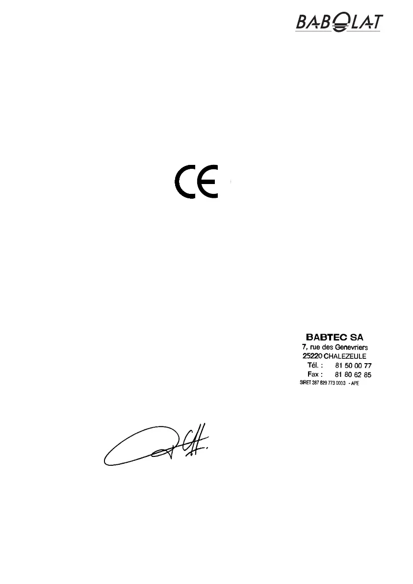 THE MANUFACTURER: BABTEC, 7 rue des Genévriers 25220 CHALEZEULE FRANCE
