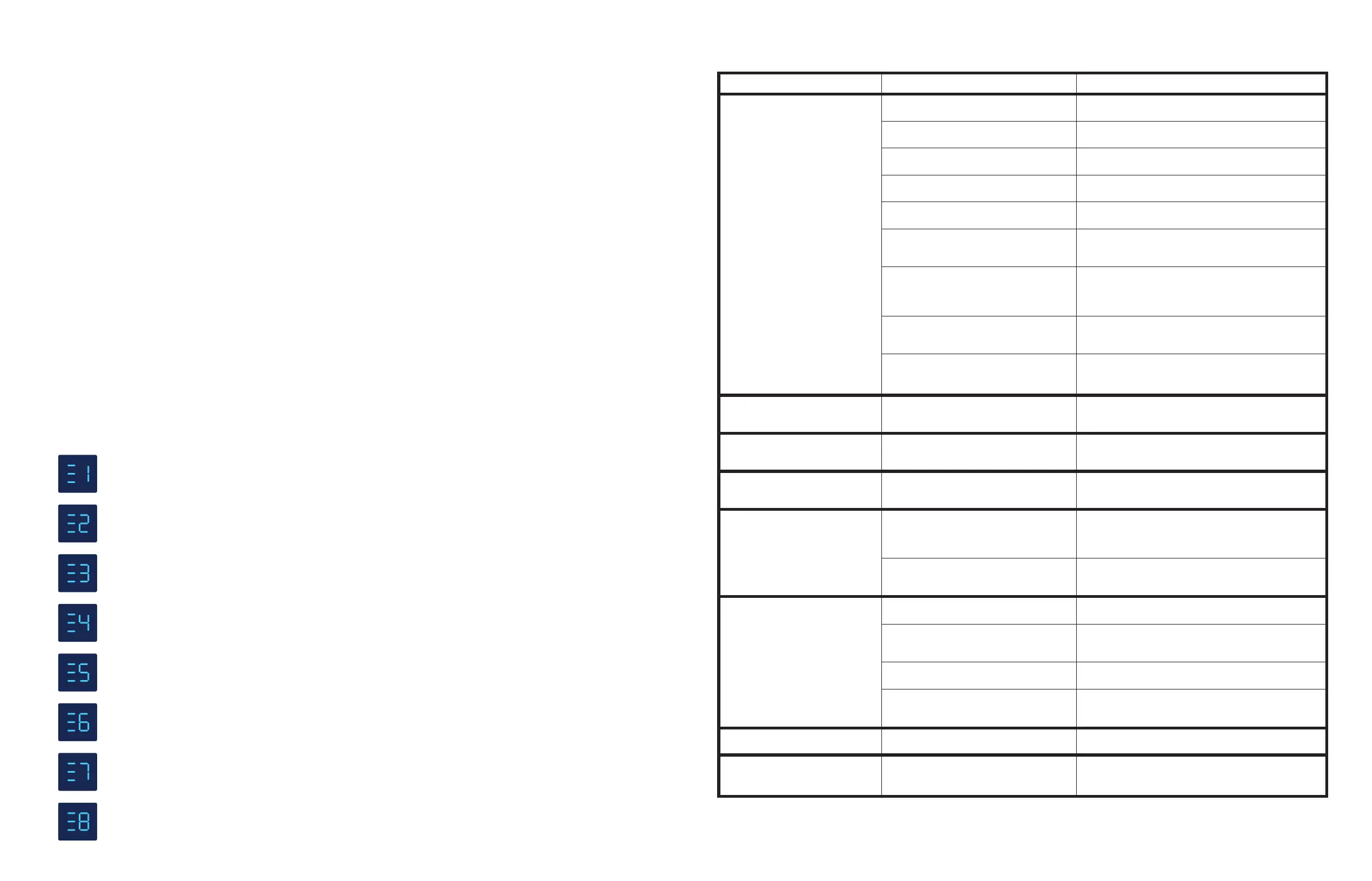 In the unlikely event of an electrical component error or interruption during operation, the following codes will