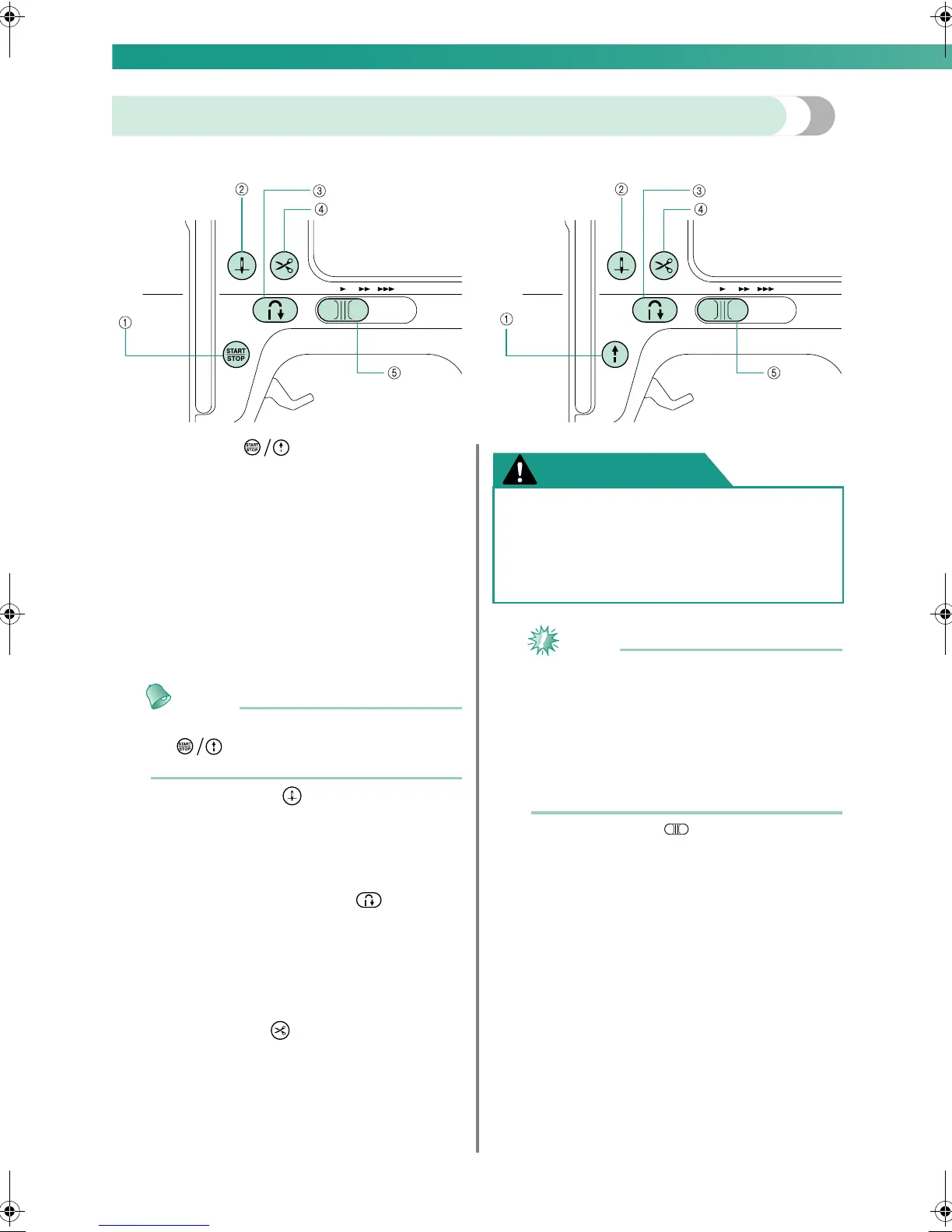 Press the start/stop button to start or stop sewing. The