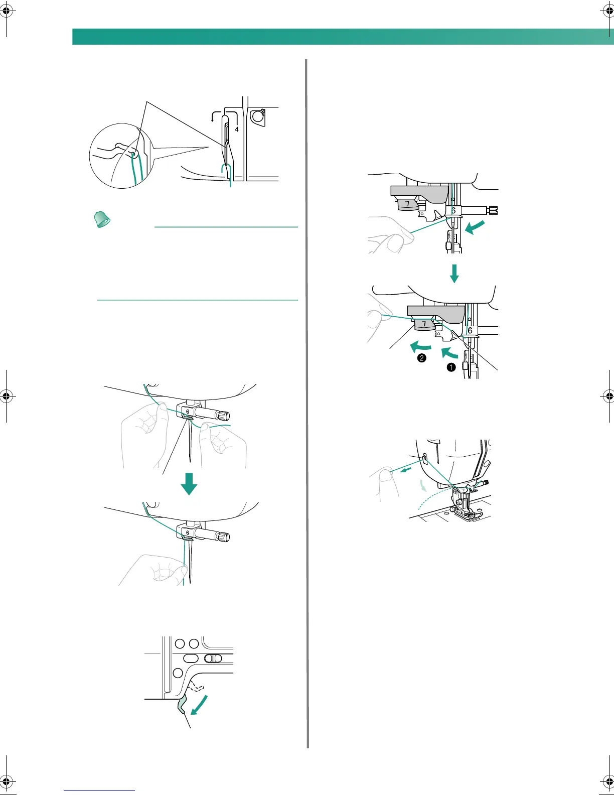 the thread into the thread take-up lever. Be