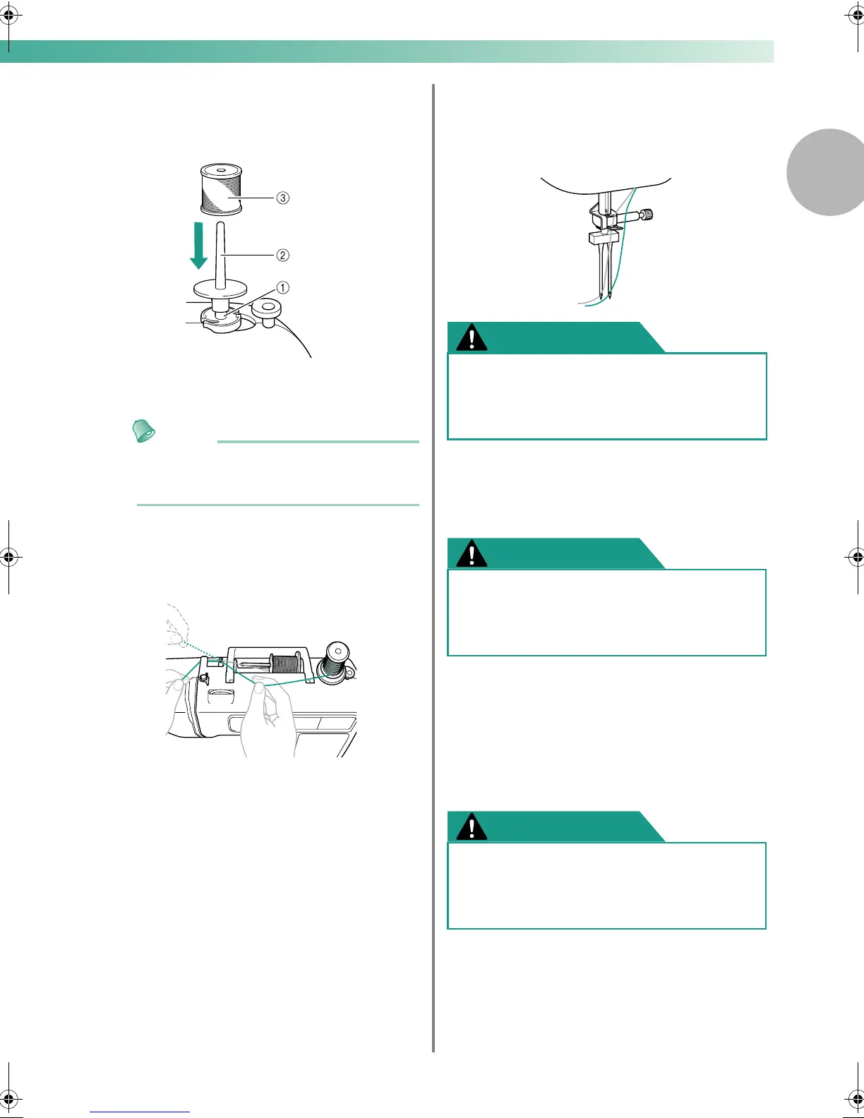 ● When using the twin needle, be sure to