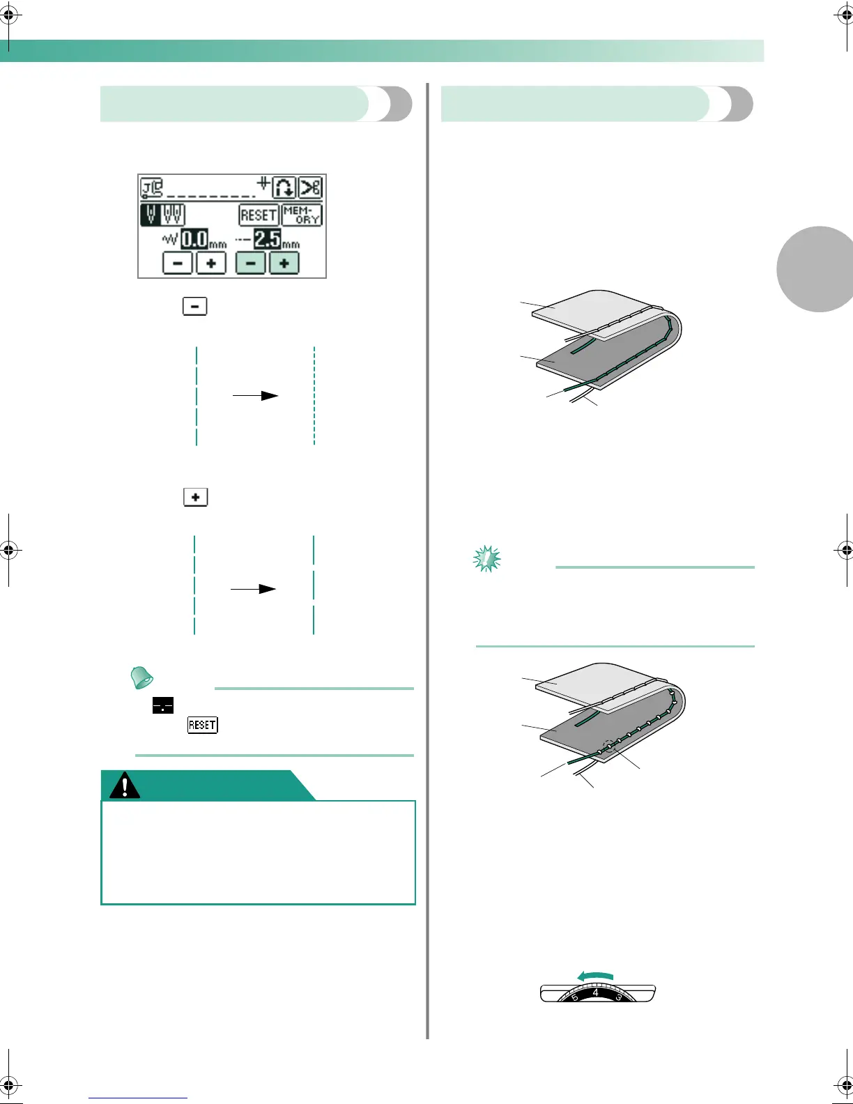 Each press of makes the stitch coarser (longer).