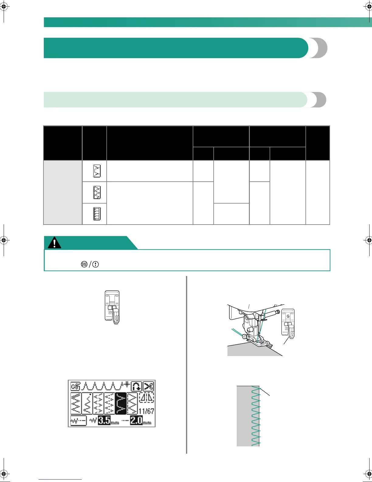 overcasting. The procedure for sewing overcasting stitches is explained according to the presser foot that is