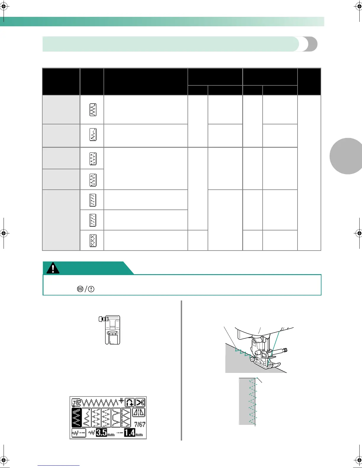 Seven stitches can be used to sew overcasting stitches with zigzag foot "J".