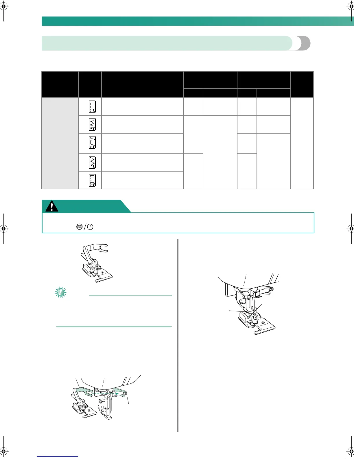 ● Be sure to turn off the main power before replacing the presser foot. Otherwise, injuries may