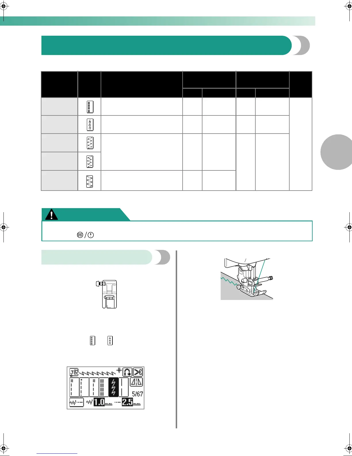 ● Be sure to turn off the main power before replacing the presser foot. Otherwise, injuries may