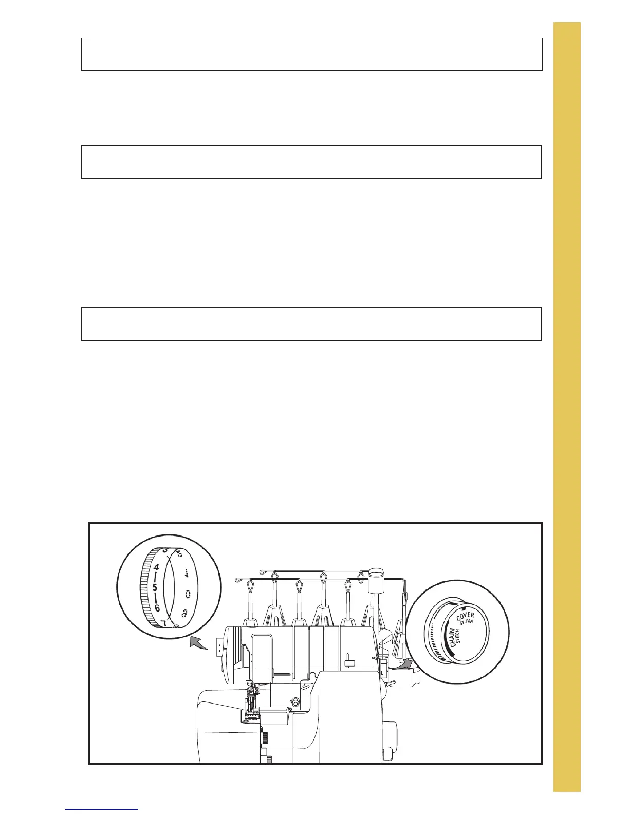stitch needles and chain looper are adjusted by dials located on the outer sides of your Evolution.