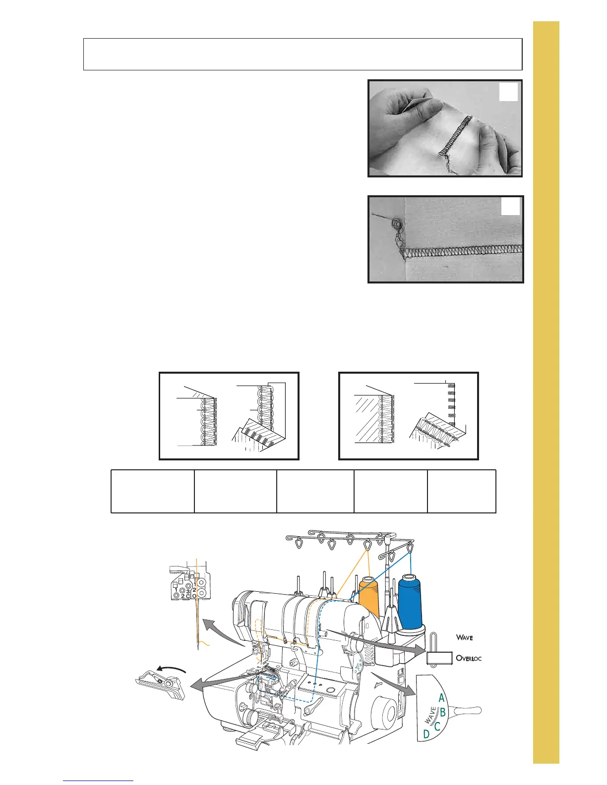 3. Thread needle thread through the upper looper thread guide on