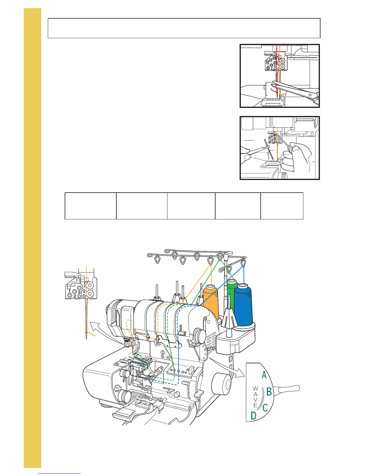 For the O-2 needle, 3-thread overlock sewing, follow the suggested