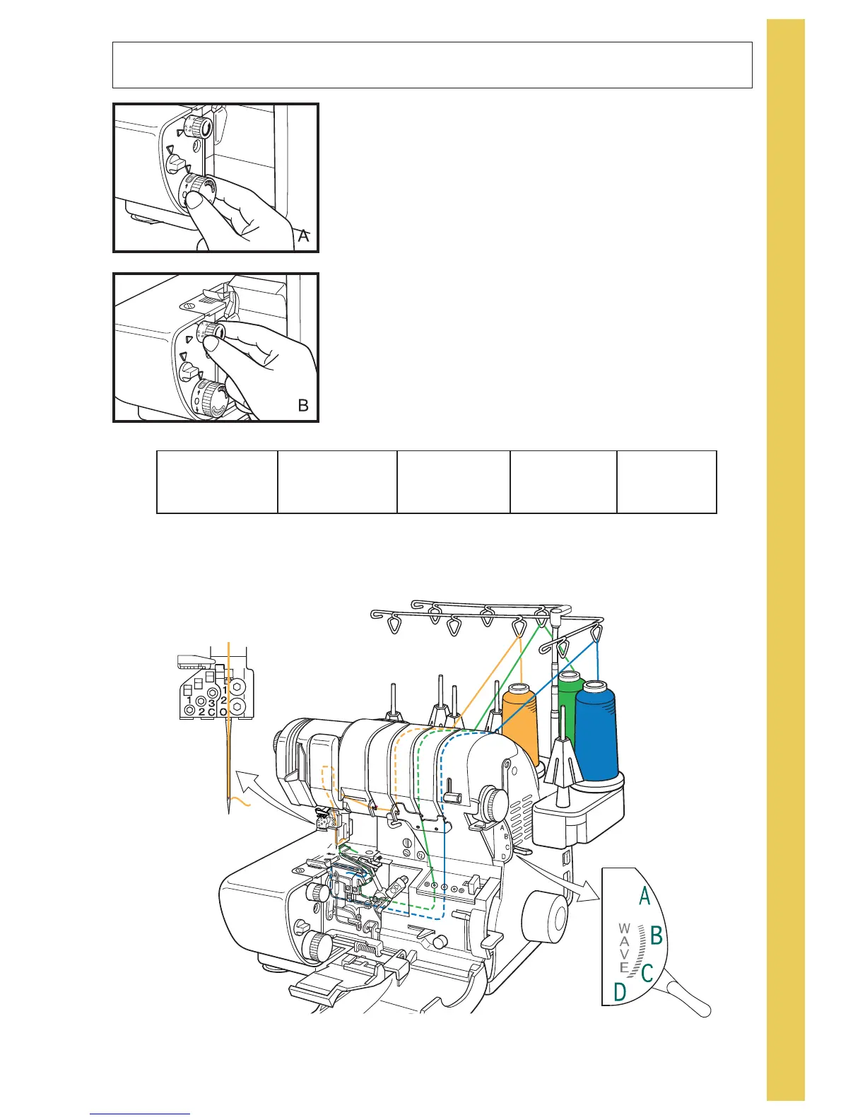 For the O-2 needle 3-thread narrow hemming, follow the suggested