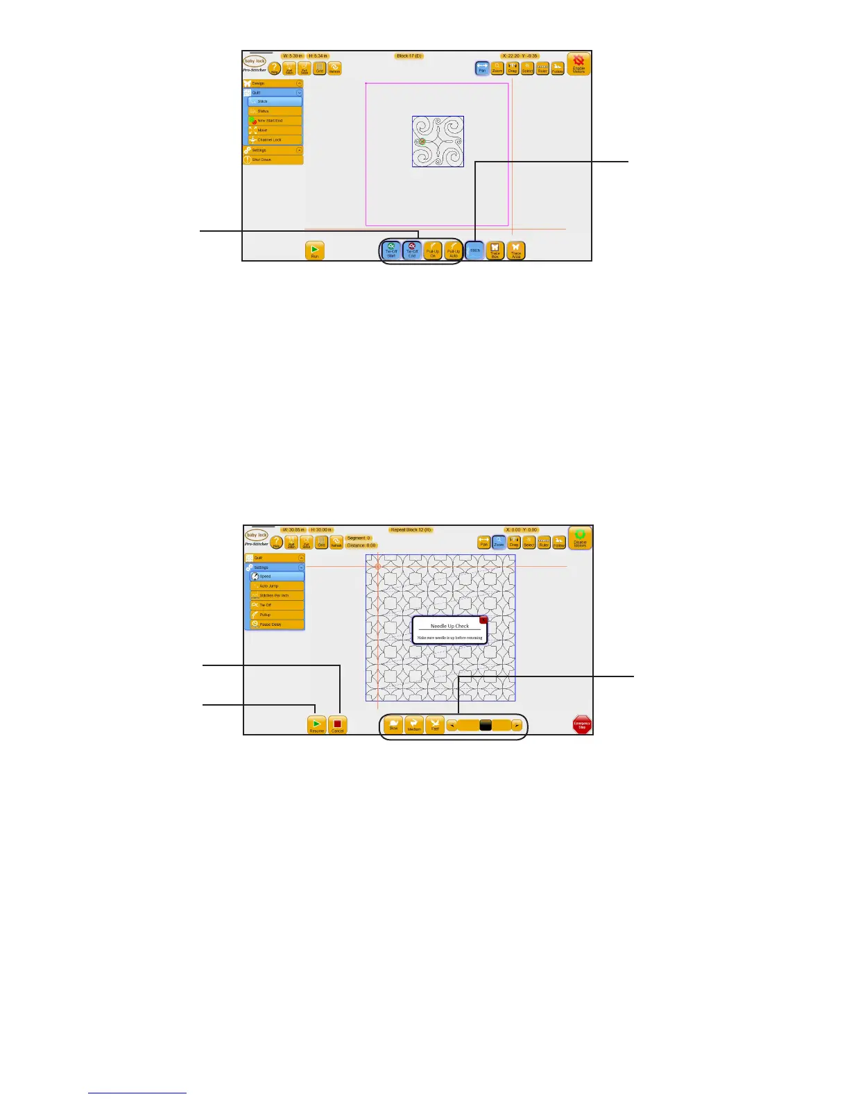 quilng speed. For more informaon about the quilng speed seng, see Control how fast Pro-